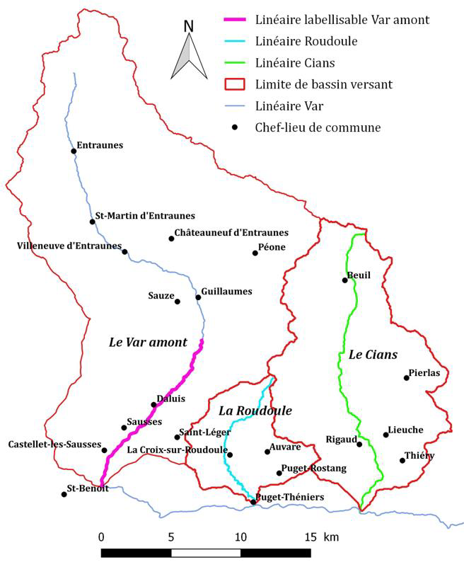 La labellisation porte sur les affluents du Var amont : le Vallon de Cante au pont de Gueydan, Le Cians de sa source à la Confluence avec le Var, La Roudoule de sa source à sa confluence avec le Var et comprend la Clue d’Amen.
